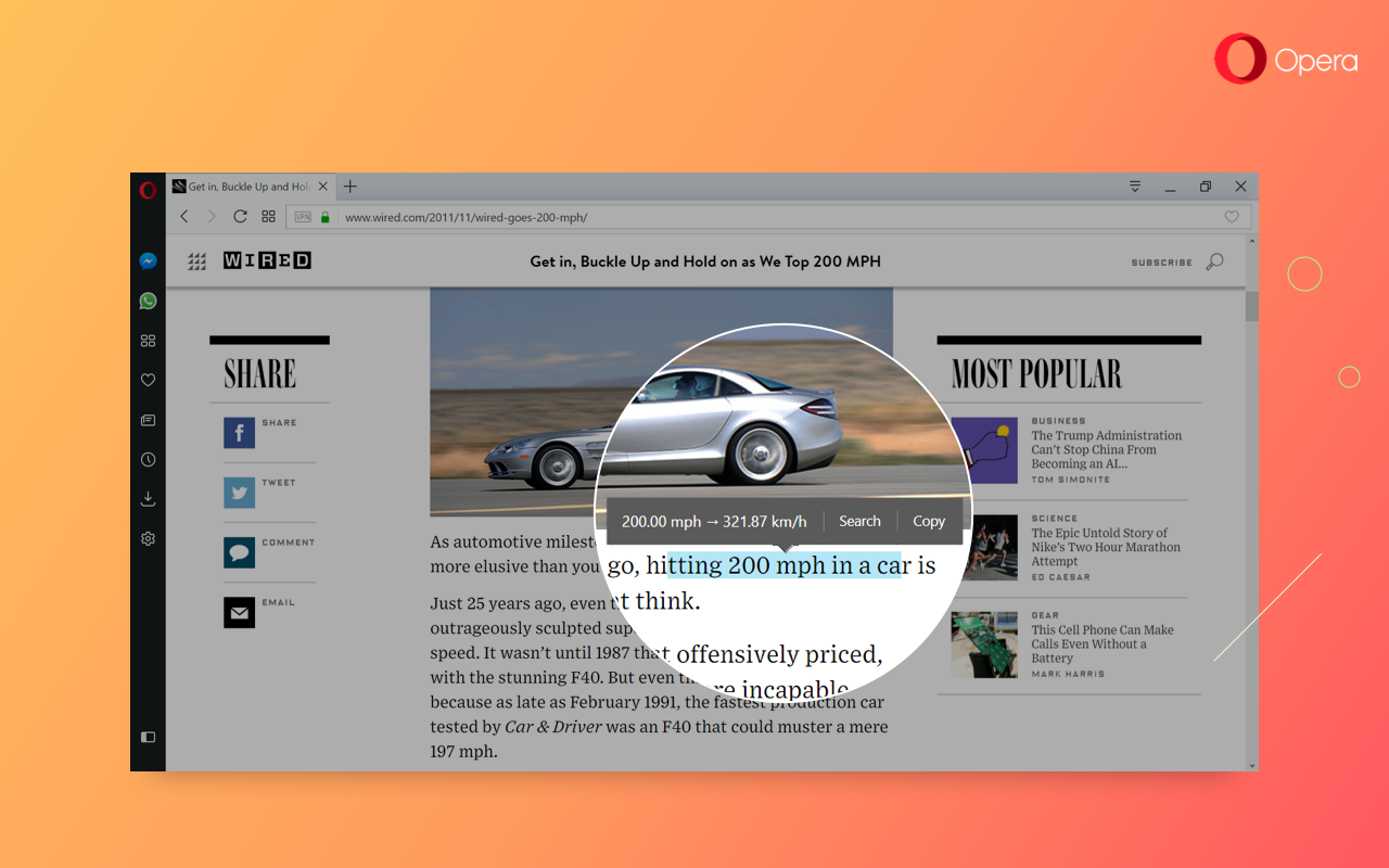 Today we’re changing how converters are triggered. You don’t need to precisely select the value to convert; Opera is more flexible in locating units of measurements within a highlighted text.