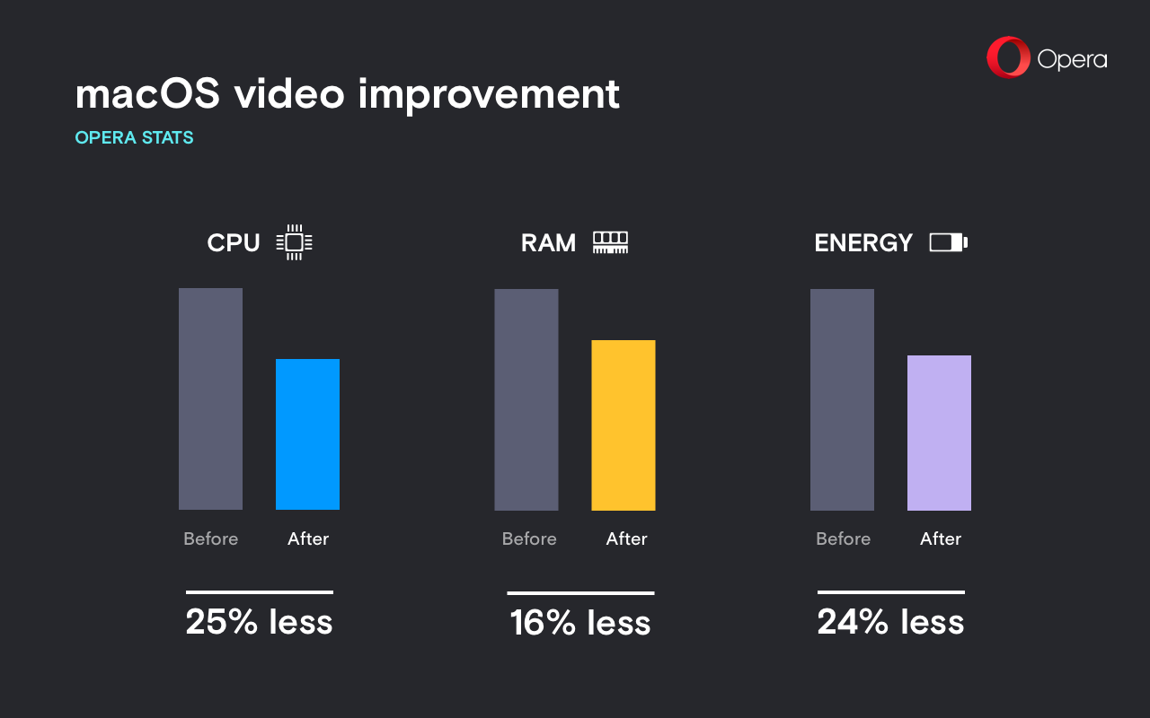Opera 50 provides an overall better video experience on macOS with smoother playback, snappier seeking and faster loading for high resolution videos.