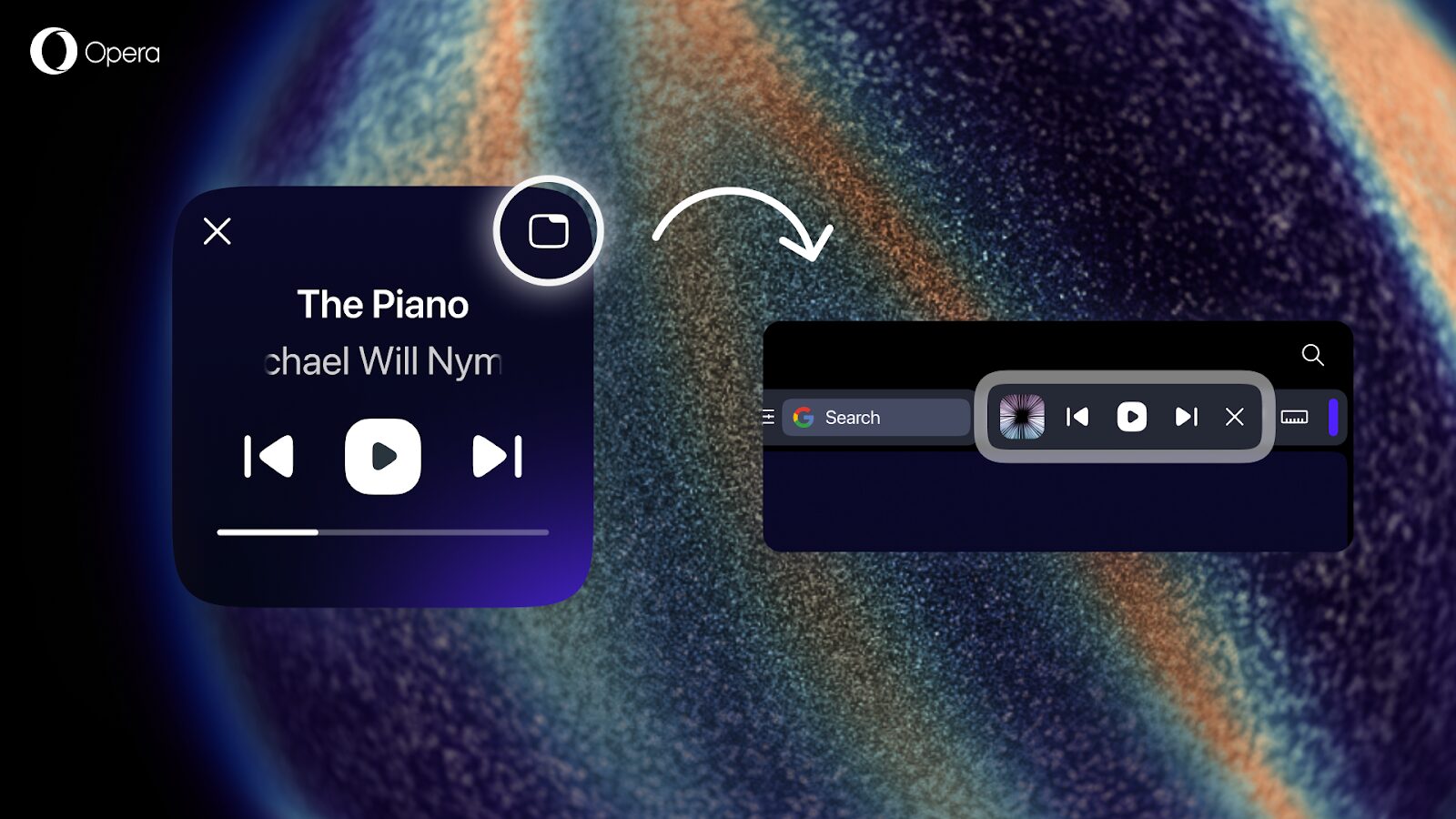 The Music Player in Opera One lets you control your music from anywhere because you can pop out the controls with a module that detaches from the sidebar. This feature is very useful when you have a some pixels to spare, but when you don’t you should still be able to control your music from within the browser at any time.
