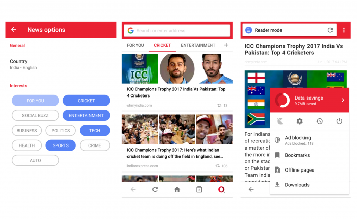 Cricket fans will have the opportunity to watch the video of the game. With recent updates, Opera Mini has also enabled users to get the most out of the web by integrating an AI-powered newsfeed, an advanced download manager for easy video download and a revamped Facebook notification bar.