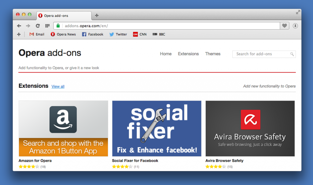 Apa Sobat Opera sudah tahu kalau kita bisa mempersonalisasi browser kamu lebih dari 1000 cara yang berbeda? Betul! Ada lebih dari 1000 pengaya atau yang biasa disebut add-on atau pun extension pada katalog yang tersedia untuk browser Opera.
