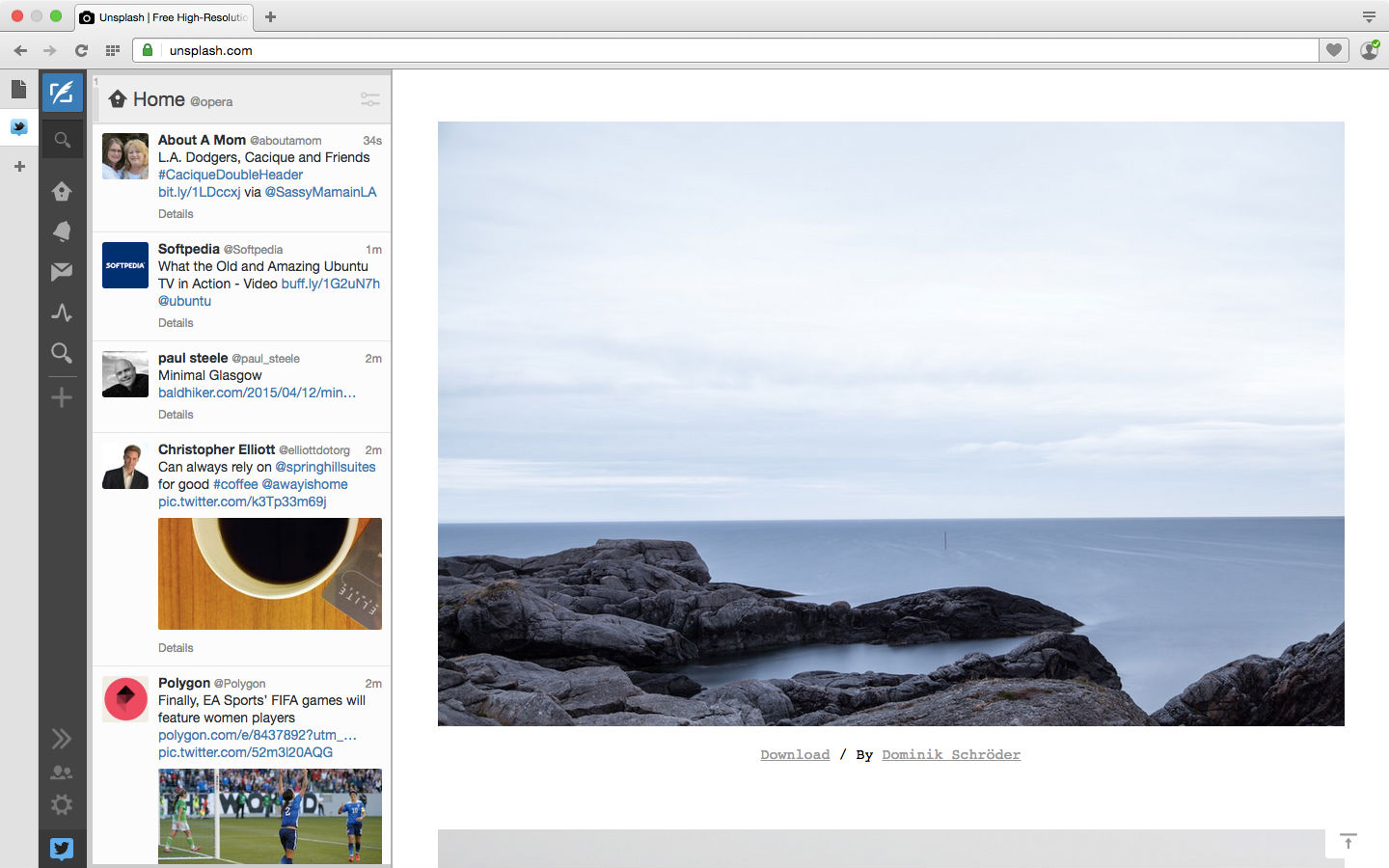 Now, you can follow Opera, or any other Instagram feed, from the sidebar of your browser. Simply download this extension, click an icon on the sidebar, log in and enjoy pictures from everyone you follow, right in your browser.