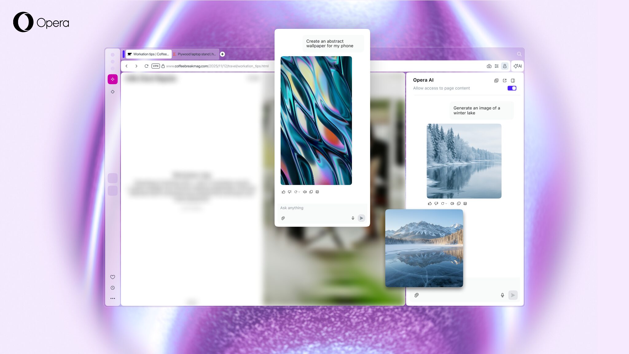 Opera AI comes to Opera One, Opera GX, and Opera Air