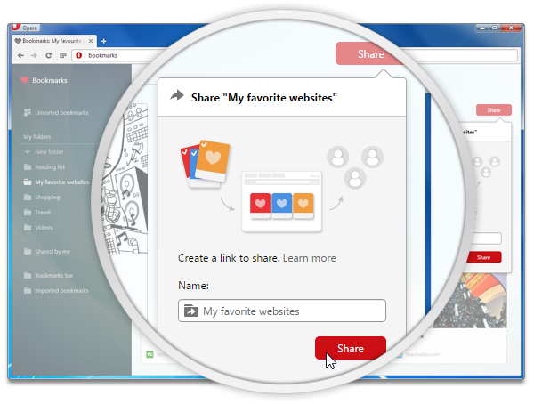 We opened December on a high note when we made bookmarks shareable both on Opera for Android and Opera for computers. Users can select specific links or even bookmark folders and share them the way they want: