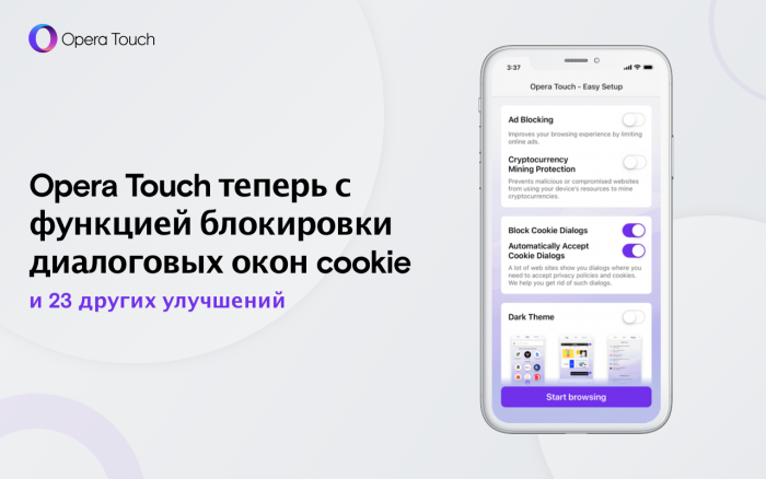 Opera Touch представляет новую функцию блокировки диалоговых окон cookie и 23 других улучшений
